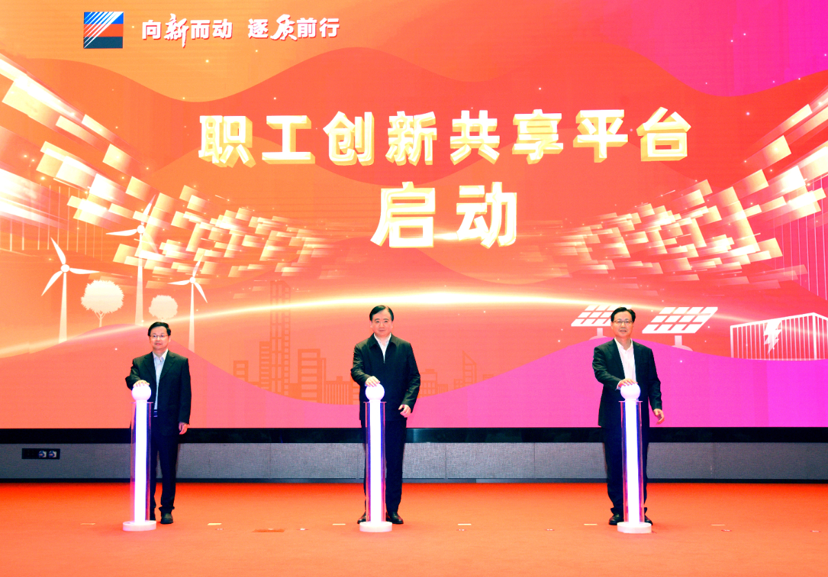 浙江省人大常委會副主任、省總工會主席劉忻,浙能集團黨委書記、董事長劉盛輝,浙能集團黨委副書記、總經理倪震出席會議并共同啟動浙能職工創新共享平臺。