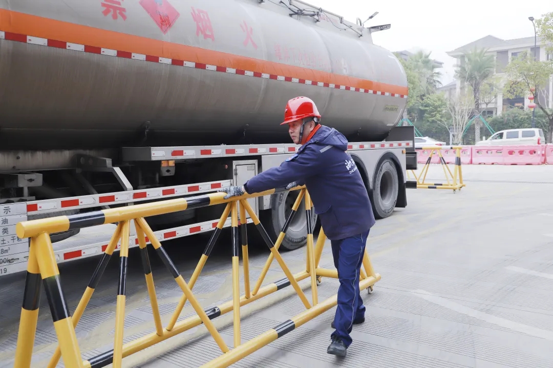 浙石油溫州樂清云門站站經(jīng)理錢小龍,做好隔離防護,確保卸油安全。 鄭藝帥 攝