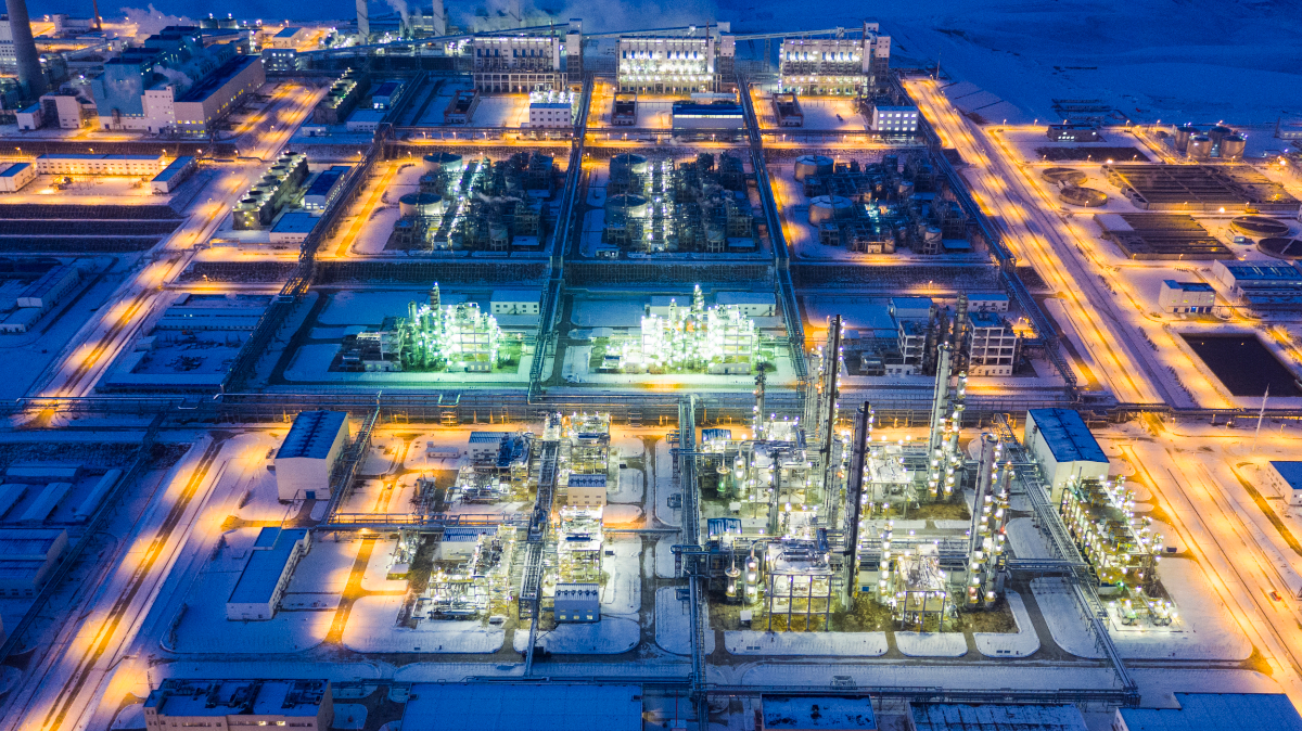 在伊犁河畔,新天煤化工燈火通明,煤制天然氣通過綿延萬里的“西氣東輸”管線送往浙江。 王麟 攝