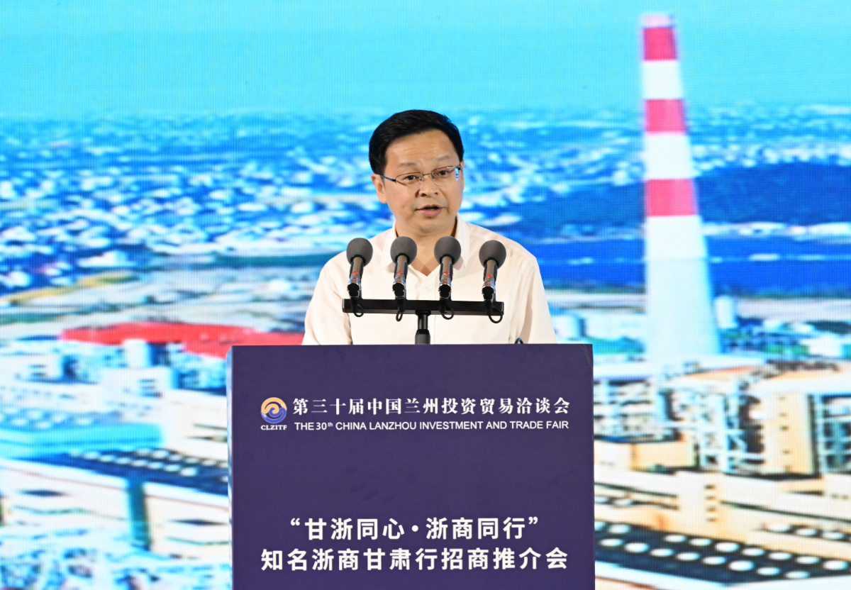倪震在“甘浙同心·浙商同行”知名浙商甘肅行招商推介會上作主題發言。 甘肅日報盛學卿