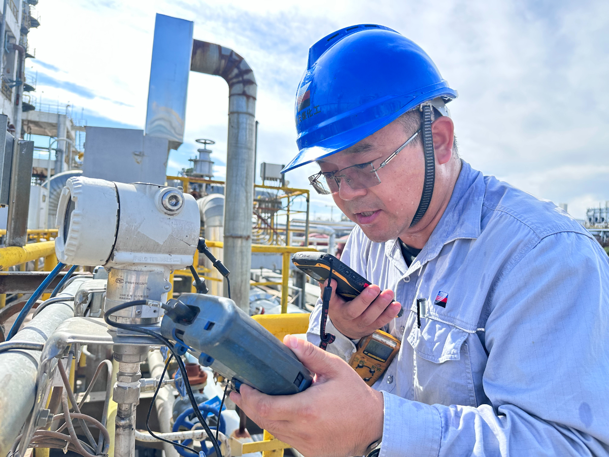 烈陽高照,浙能集團旗下的伊犁新天煤化工儀控人員正在檢測儀表工作狀態。 方佳 攝