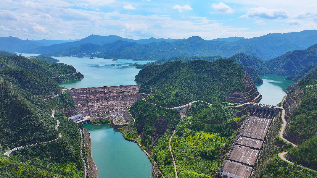 在千峽湖碧波中,灘坑水電站提供著源源不斷的清潔電。 張文 攝
