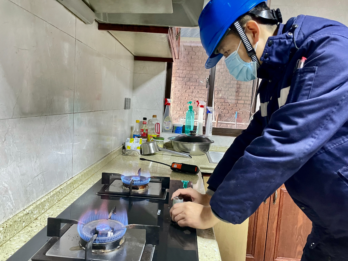 浙能燃氣安吉公司安檢人員正在老小區為用戶調試天然氣設備,確保用氣安全。 周莉琪 攝