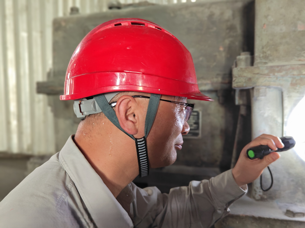 巡查腳步不停,在B碎煤機旁,岑一洋反復監測設備振動值,汗水流進眼睛里,卻因為煤灰粘在手上,只能用手背去擦。“振動數據是設備健康的‘晴雨表’,絲毫不能馬虎。”他仔細記錄下碎煤機各項運行參數,確保碎煤機能處于長周期平穩運行狀態。這位青年黨員,正用自己的實際行動,守護著輸煤系統運行安全。