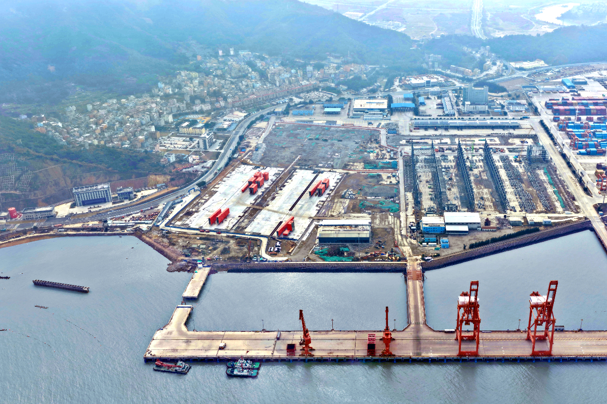 浙江(華東)深遠海風電母港(核心區)一期工程建設現場航拍圖。 溫州母港公司 提供