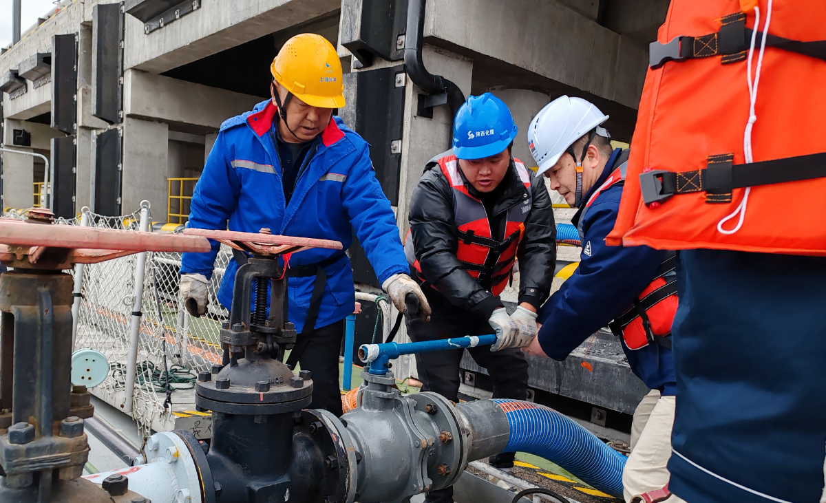 為確保蘭溪油庫順利完成首次進油,浙石油銷售公司靠前指揮、統籌謀劃,提前編制進油方案,組織油庫作業人員反復實地演練,完善安全風險分析及評估,落實各類應急處置方案,逐項檢查復核各環節。作業當天,現場人員專業高效完成取樣計量、油品化驗、設備檢查、閥門確認等流程,嚴陣以待迎接首輪油的抵達。