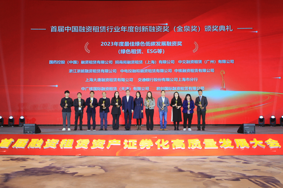 本網(wǎng)訊 3月29日,“金融賦能助發(fā)展、泉涌浦江潤(rùn)萬企”——首屆融資租賃資產(chǎn)證券化高質(zhì)量發(fā)展大會(huì)暨首屆中國(guó)融資租賃行業(yè)年度創(chuàng)新融資獎(jiǎng)(金泉獎(jiǎng))頒獎(jiǎng)典禮在上海臨港舉行,浙江浙能融資租賃有限公司受邀出席本次活動(dòng)并榮獲“2023年度最佳綠色低碳發(fā)展融資獎(jiǎng)”。